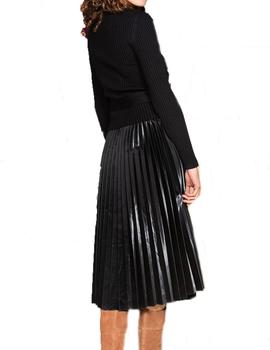 Vestido. DERHY. combinado punto y ecopiel. parte de arriba en punto, cruzado con hebilla metálica en un lado. falda largo midi, plisada en ecopiel.