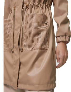Sahariana.LOLA CASADEMUNT BY MAITE. En ecopiel de color piedra.Con capucha.Lleva bolsillos. Ajusta en la cintura con cordón en el mismo material.Manga larga.
