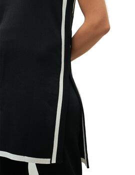 Top. LOLA CASADEMUNT.Largo.Con grandes aberturas en los lados.Escote en pico. Ribete contrastado en blanco.