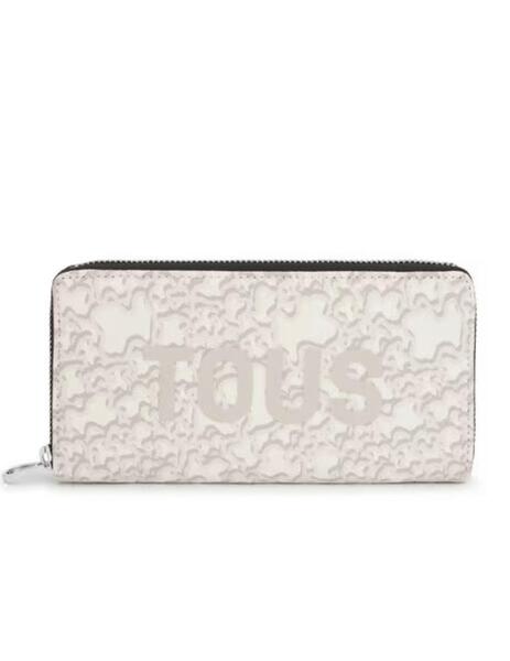 Billetera. TOUS.Coleción Evolution.Estampado Kaos mini en color blanco y gris.Cierre con cremallera.En el interior dos compartimentos abiertos para billetes, bolsillo central con cierre de cremallera para monedas y 8 ranuras para tarjetas.Medidas;10 x 19,5 x 2,5 cm.
