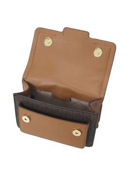 Bolso. Michael Kors. Colección Heather combinado piel lisa y logos MK.Cierre con solapa y botón magnético, con logo en dorado MK.En el interior varios compartimentos. La tira combina cadena en dorado y piel.Se puede llevar de hombro ó de bandolera.Medidas; 13 X 20 X 6 CM. ( Alto x largo x fondo)