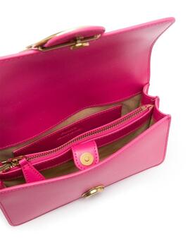 Bolso. Pinko. Cierre con solapa. Detalle de tachuelas en el pasador.Hebilla de love birds diamond cut de metal. En el interior dos comparatimentos y bolsillo con cierre en cremallera.Correa regulable y extraible que combina cadena redonda y piel.Medidas; 14 x 21 x 6 cm ( Alto x largo x ancho ).