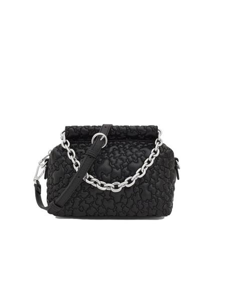 Bolso. Tous. Bandolera de la colección Jane Puffy bear en piel sintética efecto piel de color negro con grabado en osos. Tamaño pequeño. Cierre con cremallera.Tira bandolera regulable y extraible y asas de mano en cadena plateada. Meididas; 17 x 25 x 12 cm.