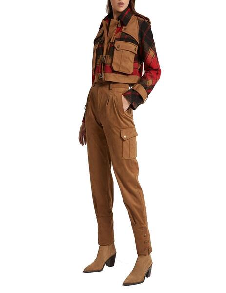 Chaqueta. Highly Preppy. Estampada a cuadros en multicolor con detalles en color camel. Dos grandes bolsillos. Cierre frontal con ganchos metálicos. Detalle de trebillas en los puños.