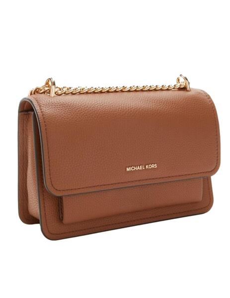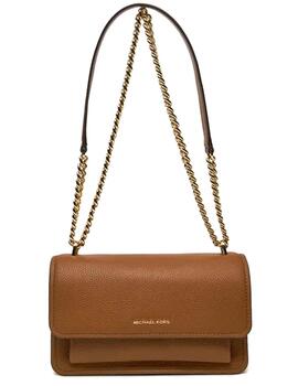 Bolso Michael Kors. Modelo Claire en piel granulada de color camel. Tamaño grande.Cierre con solapa y botón magnético. Bolsillo plano en el exterior en la parte de atrás. En el interior dos compartimentos y bolsillo con cierre en cremallera. Medidas; 23 x 14 x 8 cm.